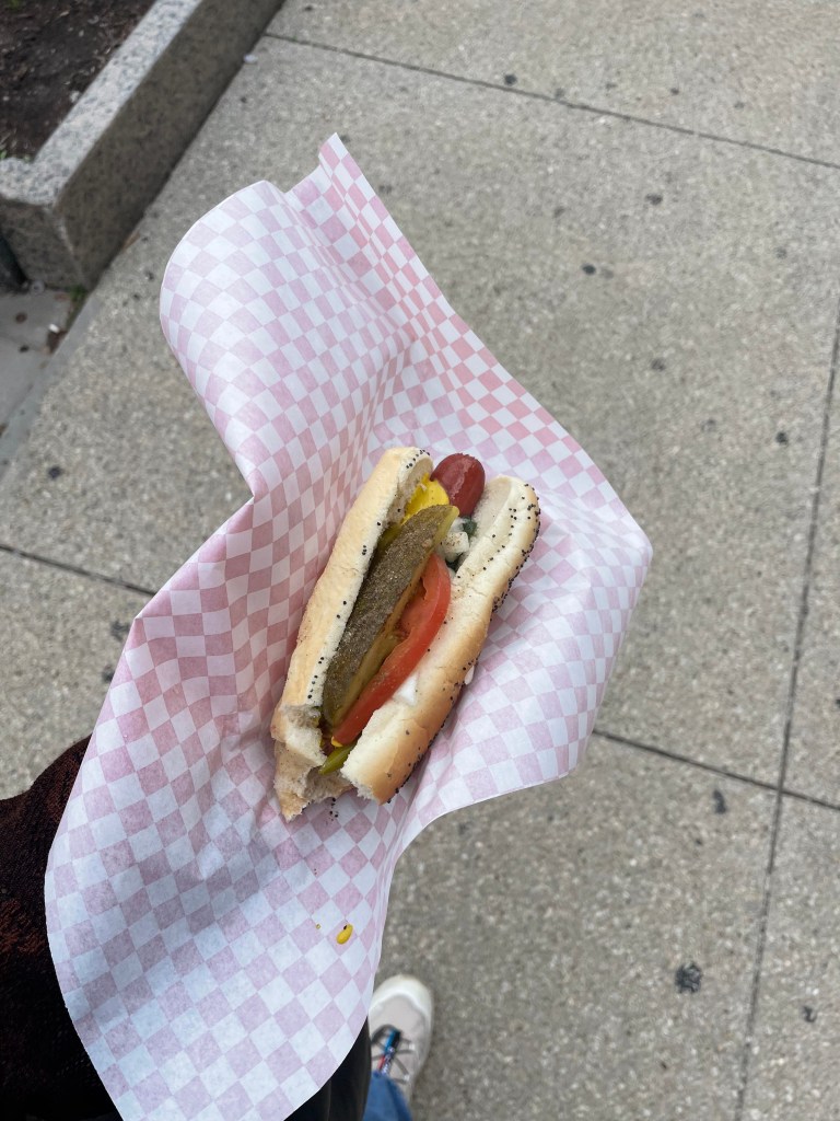 I tried a Chicago dog at a place right next to the Bean and Congress Plaza Hotel. It was hot, fresh, and delicious. If you’re in Chicago you gotta try at least one!